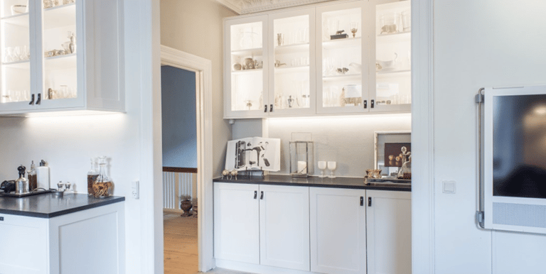 ✅ Højkvalitets bordplader – Staron, natursten, sinteret kvarts er alle førsteklasses materialer, der anvendes i luksuskøkkener.